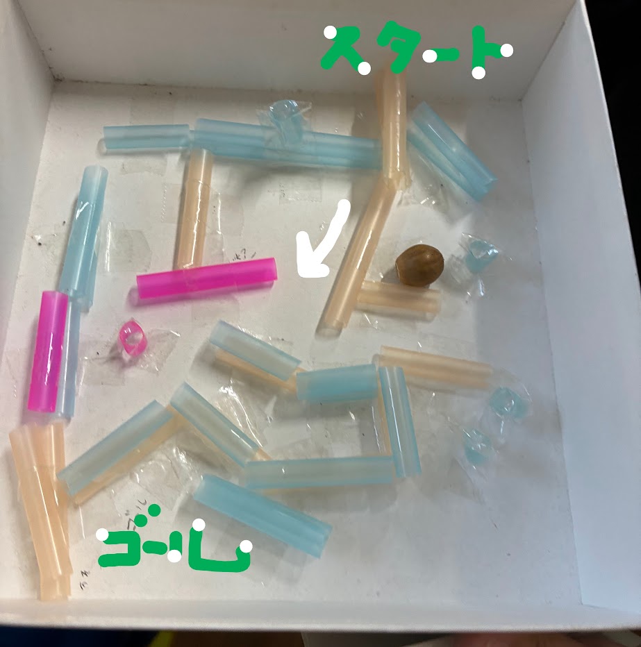 空き箱の中に、ストローで迷路を作ります。