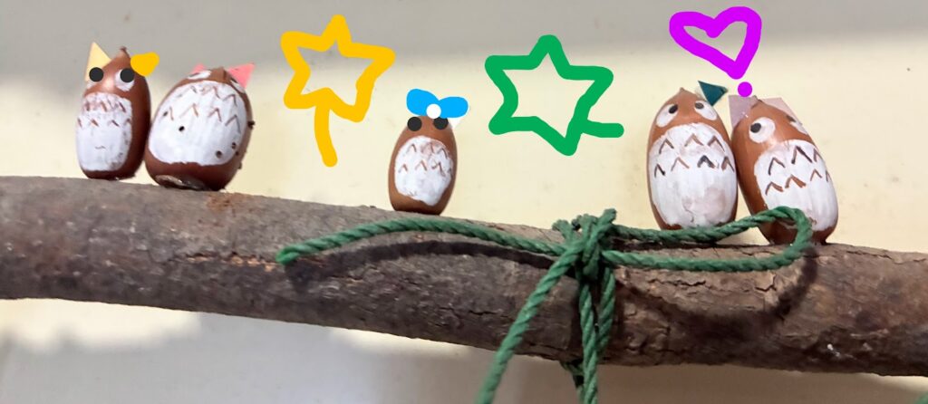目やくちばしを付けたら、フクロウになりました。