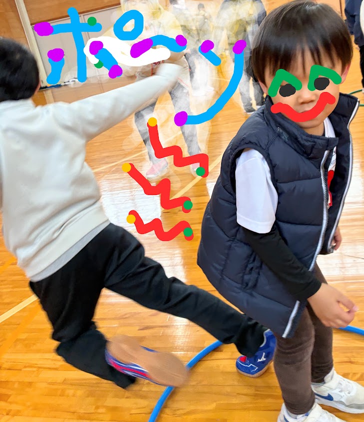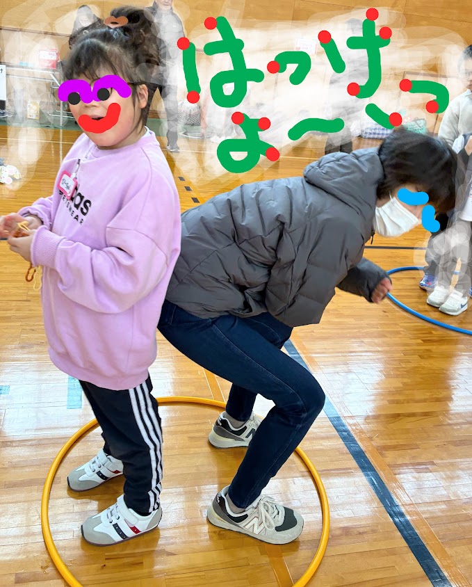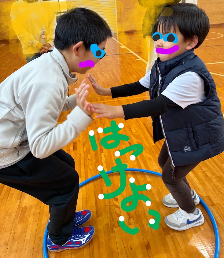 さらに、リズム遊びを一緒にしたりすることで、友達と一緒に遊ぶ楽しさがわかってきて、すもう遊びはより意欲的になってくると思います。