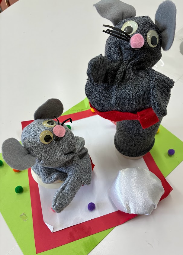 ねずみのすもうのお話をいっそう豊かにイメージさせるためには、人形を利用することもいいですね。