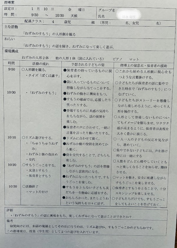 〇 ねずみのすもうのお話からの発展では、想像力を豊かにし、役になりきっての表現力