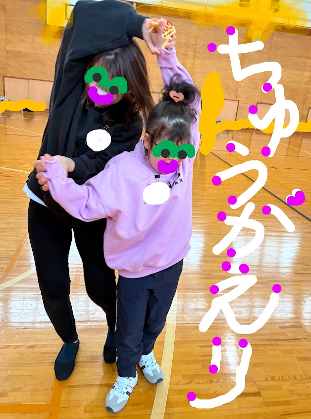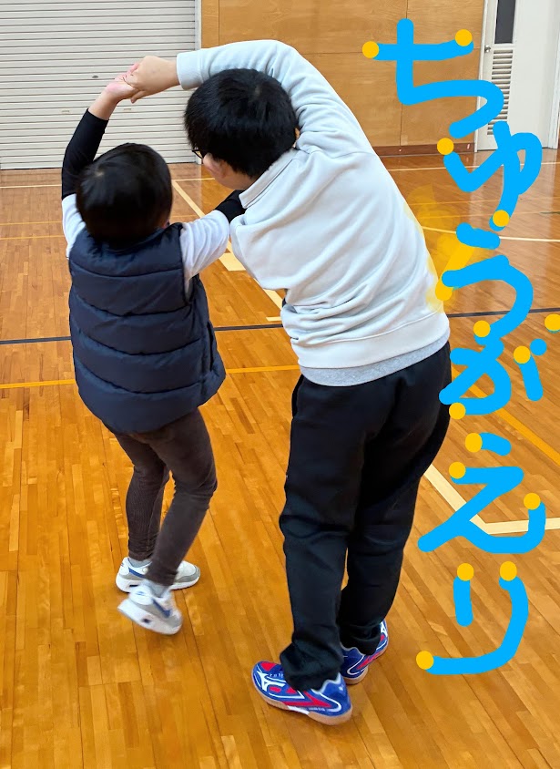 ・『ちゅうがえり』・・・両手をつないだまま、でんぐりがえりをする。(なべなべそこぬけの要領)