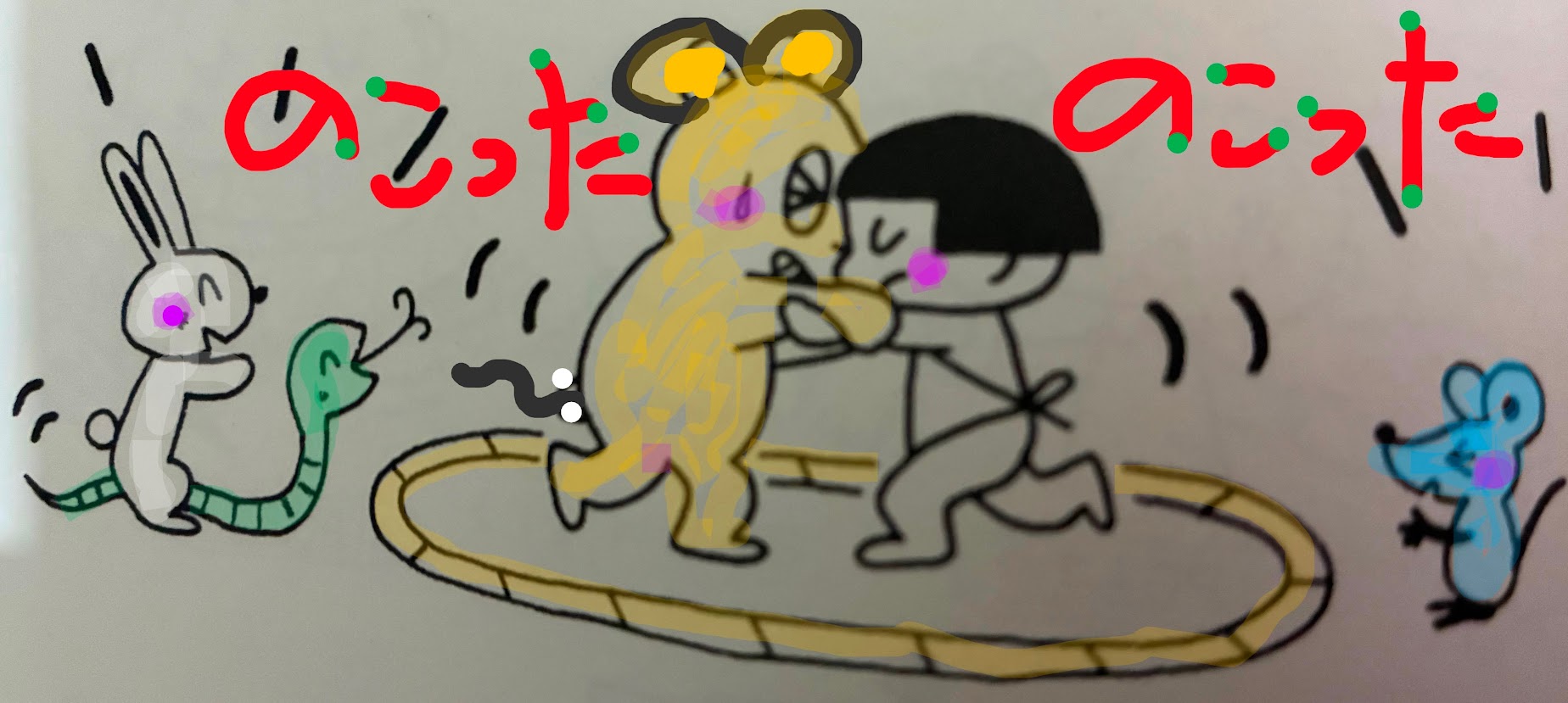 ★ 子どもたちに話すときには、すもうの場面をおもしろく、二匹のねずみのやりとりをアドリブでするといいですね。