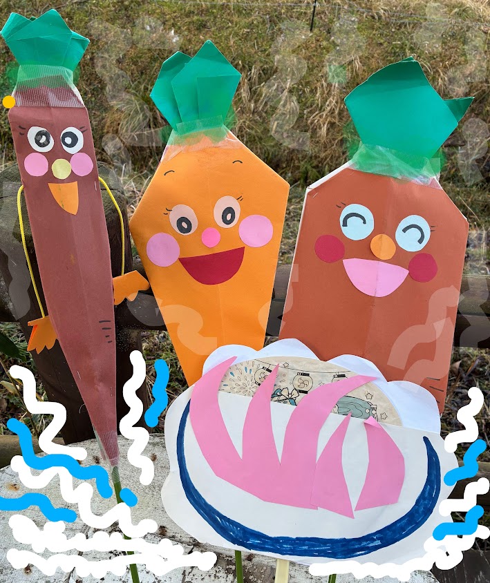 大根くん、にんじんさん、ごぼうくんは仲良し3人組