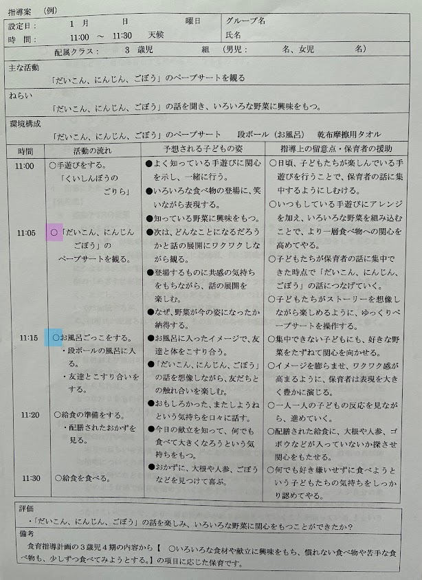 ・なぜそのベープサートをするのか、保育者の意図を込めましょう。