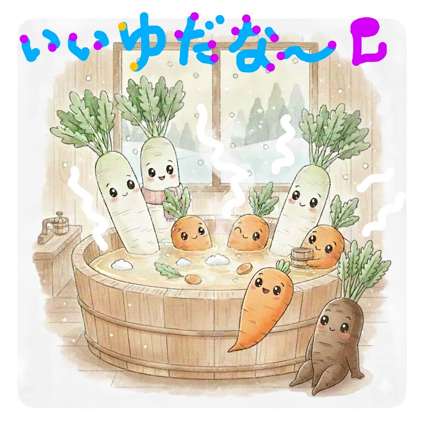 〈お風呂に入る大根にんじんごぼう〉