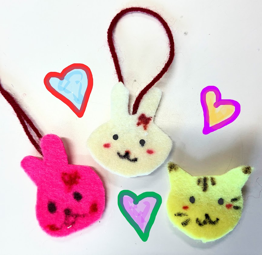 ・フェルトを好きな形に切って、油性ペンで動物の顔を描きました。